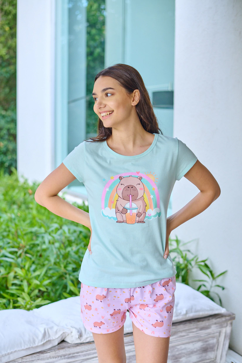 Composición: Jersey Algodón Liso con Estampa, Short Estampado.